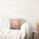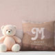 En boho-kudde för en liten flickas daghem med en bakgrund av dammiga rosa berg och träd. Anpassa med dotterns inledande/monogram i rosa-retrotypsnitt, med hennes namn och födelsedatum.