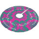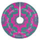 En underbar Julgran-kjol med ett boho hippie-utseende. I trendigets rosa och grönt visningar den mönstrade träd-kjolten ord "God jul in elegant script typography. Anpassa med ditt namn eller annan text, som kommer att visas tre gånger kant i träd-kjolen.