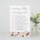 Rosa Boho Wildblomma Baby Shower Game. Låt dina gäster testa sin intuition med den här Mamman eller pappas spel, en roligt och interaktivt sätt att fira de blivande föräldrarna. Det dammiga ro rosa-manuset på presenter:s framsida väcker frågor till gästerna om vem som är mest benägen att göra vad gång baby kommer fram till. Baksidan har en koordinerande mönster av boho butterflies, vintage vilda blommor, torkade gräs och mjuk grönt bladfärg på en dammig bakgrund av ro rosa, vilket garanterar en snyggt och ett polerat utseende. Den varma, jordnära grönten av brunt, brunt, rost, terracotta, bränd orange och smutsig spets gör att det här spelet blir en perfekt som passar för alla vår, sommar, fall eller vinterbabyduschar. Skratt och tänd roligt till ditt evenemang med ett spel som är lika minnesvärt som själva dagen!