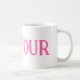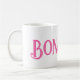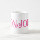 En elegant och roligt vit mugg med Fransk hälsning för hej i ett modernt typsnitt av rosa. Njut.