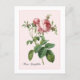 Ett konstkort i finkonststil som visar Rosa Centifolia, en charmig illustration av rosa rosor av Pierre-Joseph Redouté (cirka 1817–1824). Känd som - Hundbladig ros, detta stycke står som en av de främsta prestationerna av Redouté, den mest berömda botaniska konstnären genom tiderna.