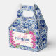 Rosa bougainvillea blå kakel bröllopsdusch presentaskar