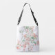 Den här korsningspåsen är anpassade med ditt monogram och har en sprej av rosa bougainvillea vattenfärgsmålning. Originalteckningar. Copyright Leah Wiedemer.