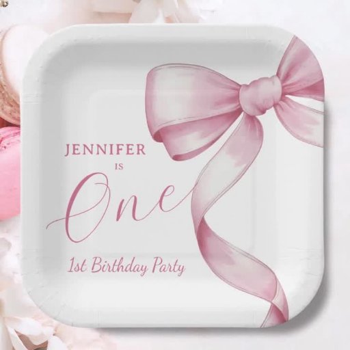 Rosa Bow 1:a födelsedagsinbjudan till Flickepartie Inbjudningar