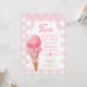 Rosa Bow 2 Scoops Roligt 2:a födelsedagen Gingham Inbjudningar