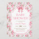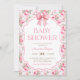 Rosa Bow Baby Shower-inbjudan. Vacker, mjuk, feminin ro mönster med coquette rosa-buskdesign. Snygg inbjudan till mamma att duscha barn. Vintage och flickflicka söker perfekt för en flickdusch.