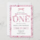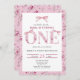 Rosa Bow-Blommigten första födelsedag Inbjudningar