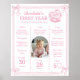 Fira ditt lilla första år med vår Rosa Bow Cake First Year Photo Milestone Poster! Designat med mjuka rosor, ömtåliga bögar och ett charmigt hjärtformat tårtema, visar den här keepausen på ett vackert sätt era baby speciella ögonblick och milstolpar. Perfekt för att visa på födelsedagsfesten eller som ett uppskattat minne i flera år för komen, ger den här poster en söt och elegant beröring till firande.