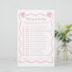 Lägg till charm till ditt coquette babyduschtema med den här personlig rosa-buggduschspelet. Perfekt för unika idéer om babyduschspel. Med det här "Gissa vem"-spelet vrids roligten till firande. Med en bra rosa-buskdesign kompletterar den alla bockbabyduschar eller rosa babyduschtema. Denna engagerande aktivitet är perfekt för rosa babyduschidéer och utgör ett minnesvärt tillskott till vilket bugg som helst party, som skapar varaktiga minnen för alla dina gäster.