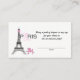 Rosa Bow Eiffel Torn Paris Frankrike Diaper Raffle Tilläggskort