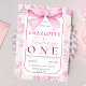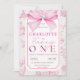 Rosa Bow Finare One Girl Chic Coquette 1:a födelse Inbjudningar