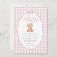 Rosa Bow Gingham Nalle Baby Shower-inbjudan