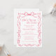 Ange tonen för din möhippa med vår förtjusning. Hon är Gifter sig Rosa Bow Inbjudningskort för möhippan. Inbjudan, som är vackert försedd med en rosa butik och en coquette-inspirerad utformning, kommer inte bara att fånga gästernas uppmärksamhet utan också att sätta en aura av romantik och elegans för den speciella dagen som närmar sig.