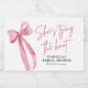 " Rosa Bow: Hennes Gifter sig" Möhippa Sparkling Vin-etiketten lägger till en elegant vid firandet av den blivande bruden. Den här charmerande etiketten har en delikat rosa-buskdesign, som symboliserar kärlek och romantik, tillsammans med den visuella frasen "Hon är Gifter sig". Perfekt för att lägga till flaskor av mousserande vin vid möhippan, denna märkning utgör ett steg för en skål för brudgummens resa till äktenskapliga blickar. Vare sig den används som dekorativ accent eller som en tankfull gåva tillför den en personlig och snyggt till festligheterna och skapar omhuldade minnen för bruden och hennes nära och kära.