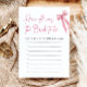 Gissa hur gammal bruden är med vår Rosa Bow "Hon är Gifter sig".. var Bride Möhippa Game. Den här roligten och det interaktiva spelet kommer att ha gäster som gissar på brudens ålder i olika foton, som orsakar skratt och konversation. Det här spelet är utrustat med en charmerande rosa-buskdesign och tillför lite elegans till firande samtidigt som det skapar minnesvärda stunder för den blivande bruden och hennes gäster. Låt gissningsspelen börja!