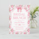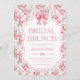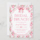 Rosa Bow Möhippa Brunch-inbjudan. Vacker, mjuk, feminin ro mönster med coquette rosa-buskdesign. Snygg inbjudningskort för möhippan för den framtida bruden. Vintage, vallmo och flickvän söker perfekt för sin speciella möhippa firande.