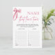 Rosa Bow Namn som Kärlek Tune Möhippa Game Inbjudningar