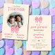 Rosa Bow Pearl Photo Girl Joint Birthday Inbjudningar
