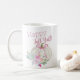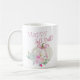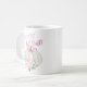 Rosa Bow Pumpkin Lycklig Fall Y'all Coffee Mugg med vit pumpa, rosa båge och pastel blommigt löv.