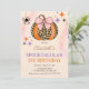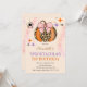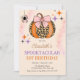 Halloween födelsedagsfest inbjudan. Halloween-födelsedagskalas inbjudan med rosa båge, leopardpumpa och stjärnor.