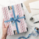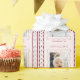 Den här lysande anpassadet julfotopresenten som omsluter pappra innehåller en minimal vågigt fotomall i ram med rosa båge och baksida i rand. Visa din favoritfamiljs foto som tillför elegans och värme till dina julhälsningar.