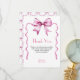 Barn med vattenfärg Rosa Bow Ribbon Baby Shower Tack för ditt kort. Matchande objekt är tillgängliga.