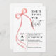 Hon gifter sig inbjudningskort för möhippan med en rosa båge. Matcha med valfritt objekt i vår samling för en coquette-estetik.