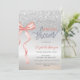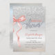 Rosa Bow Silver Glitter Bokeh Möhippa Inbjudningar