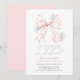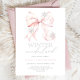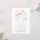 Rosa Bow Winter Onederland 1:a födelsedagsinbjudan med en mjuk, rosa som är försedd med delikat snöflingor, utstrålar denna utformning en modern men klassisk vintern under bebisen.