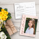 Elegant rosa studenten annonsering med vykort personlig med ett foto, student namn, namn i skolan och året. Lägg till ett ord om student på andra sidan av anslagstavlan. Student är skrivet över vykortets lämnat sida i ett namnteckning skript i en brasinspirerad nyans.