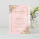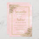 Tropisk guld- palmträdstrand på rosa vattenfärg för chicrodnad och guld- rambröllop