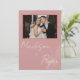 Denna rosa bröllopsinbjudan med foto har en romantisk dammig rosafärgad bakgrund i kombination med elegant typsnittsstil och ett personligt parfoto. De mjuka rosa nyanserna och minimalistiska layouten skapar en tidlös och modern design som är perfekt för stilfulla bröllop.