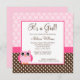 En söt och modern uggla baby flicka shower inbjudan. Med prickar och ränder i nyanser av rosa, brunt och vitt.