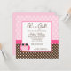 Rosa Brun Uggla Prickig Flickig Bebis Baby Shower Inbjudningar
