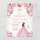 Denna eleganta och glamourösa födelsedagsinbjudan har en vacker prinsessa med brunett hår i en rosa klänning. Texten kombinerar handskriven skrift och moderna sans serif-teckensnitt för en klassisk och sofistikerad look. De blomsterarrangemang, fjäril och guld konfetti skapar den perfekta blandningen av rustik och chic.