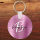 Den här nyckelkedjan för personlig i elegant har ett monogram och första namn i ett modernt svartvitt skript på en rosa borstad bakgrund i metall.