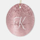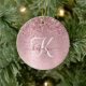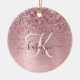 Rosa Brushed Metall Glitter Monogram Namn Julgransprydnad Keramik