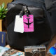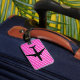 Med en mönstrad design av starkt rosa struktur inspirerades denna levande och färgstarka design av jordgubbssmak, shock rosa bubblegum. Designad för att ge ett leende med glädje och glädje. Denna bagageskylt har en ikon på ett flygplan och är helt och hållet anpassade på baksidan för att inkludera ditt eget namn och adress.