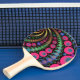 Spiral armen av en fraktal mosaik med blått och rosa bubblor.