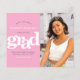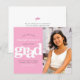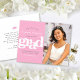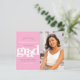 Se till så att alla dina vänner och släktingar kan fira din examen med denna fantastiska milstolpe! Skicka ut detta fantastiska, enkla, moderna, personliga fotobud "Spara datumet" på ett evenemang att minnas. Fet, grafisk, vit och mjuk grå typografi överlagras på en mjuk rosa bakgrund. På höger sida läggs ett foto efter eget val. Anpassa den anpassade texten med din examenskandidats namn, årskurs och datum. Ditt anpassade meddelande och en rosa examensmössa-ikon pryder baksidan. Matchande inbjudningar, tackkort, mössprydnader, servetter, tallrikar och andra examenspresenter finns också i denna trendiga och stilrena kollektion. Garanterat att tillföra stilig kul till deras speciella tillfälle!