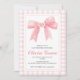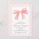 Coquette Preppy-babyduschen med rosa båge och ping gingham.