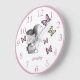 Rosa Bunny Butterfly Nursery Decor Wall Clock Stor Klocka