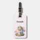 Ett bagagemärke med en fin bild med en rund formad bunny som står utanför det äggformade huset. Pastel färg och körsbär träd tillför det japanska kawaiivibe.