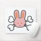 Söta små kaninkaner i rosa ansikte och korsbenskonstruktioner.
