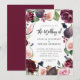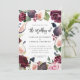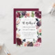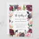 Rosa, burgundi och fikonvatten blommigt bröllopsinbjudan. Blommigt, blad och handmålad frukt. En del av en bröllop-svit. Bakgrunden till färg kan anpassas.