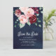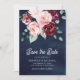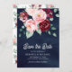 Rosa Burgundy Blommigt Photo Navy Blue Bröllop Spara Datumet