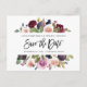 Rosa, burgundi och fig-blommigt spara datumkortet. Fin illustration av vattenfärgen och modern handskrift av skript. En del av en samling.