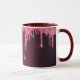 En elegant, giftig och glamorös mugg. Mörk rosa körsbär färgad faux glitter drops. Djup, mörk moody burgundisk övertoningsbakgrund. Anpassa och lägg till ett namn. Namn är skrivet med ett modernt handskript i stil. Ljusa rosa färgaden brev.