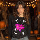 Tri-Blend Shirt för rosa Bus eller godis-droppar. © Tees & Sweats at at Zazzle. Halloweenen har "Bus eller godis" på den i rosa, och droppar med fladdermus och spöken som flyger runt.