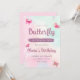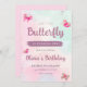 Rosa Butterflies Young Birthday Inbjudningar